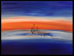 I have a friend who talks of taking sailing lessons. To be out on the water, free to explore. With good friends, good food and a full glass of wine, watching the sun setting over the horizon. This was painted for him, as a reminder to one day pursue his dream of sailing.