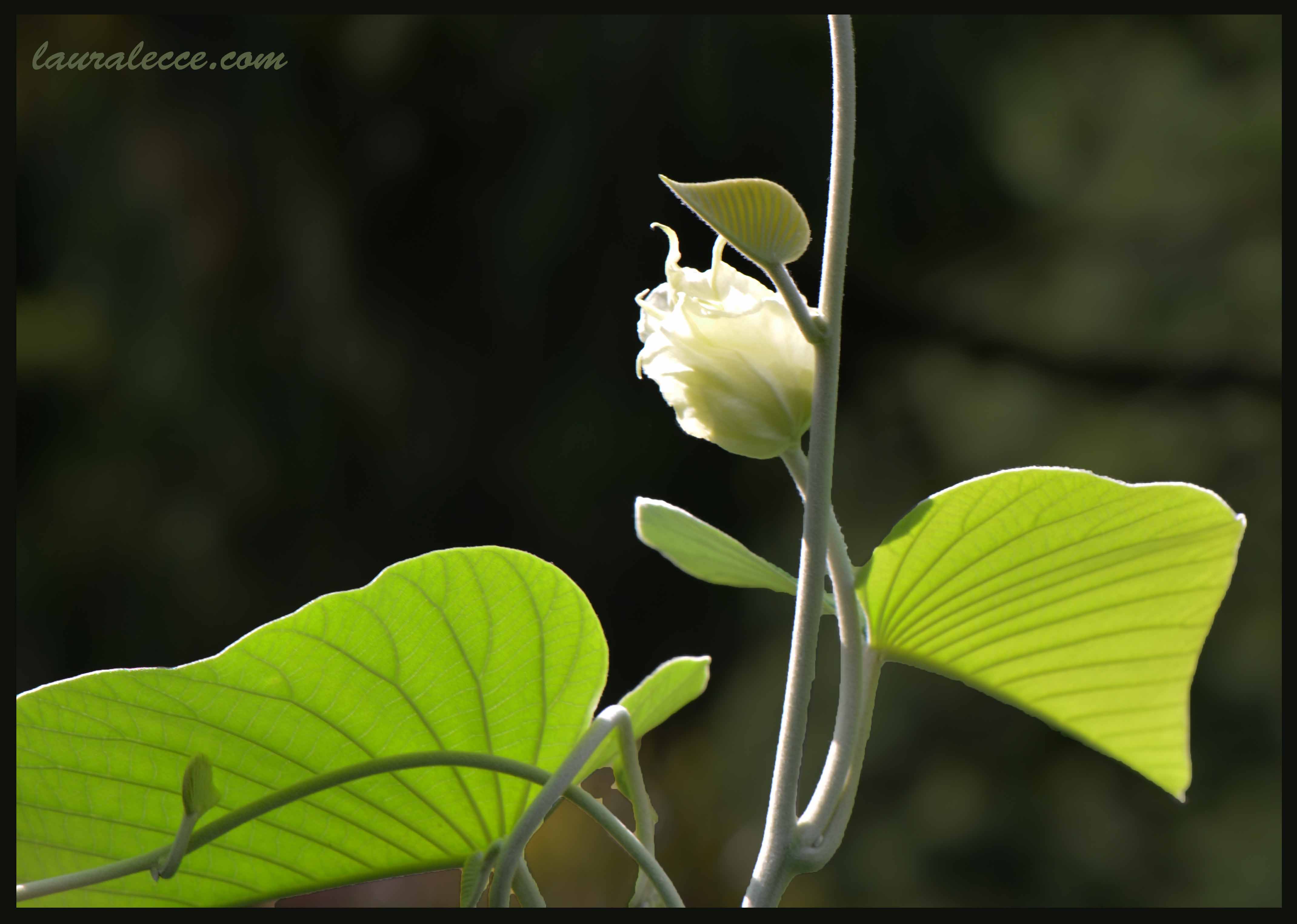 This week has been a hectic one at work, which will unfortunately continue all weekend. So for todays flower I felt the need to counteract the craziness with a peaceful and serene photograph. I have no idea what this plant is named, but it had only a few glorious white flowers on a giant vine. It caught my eye because of the way the light was shining on it. I hope it brings calm and peace to you all for the ending of this week.