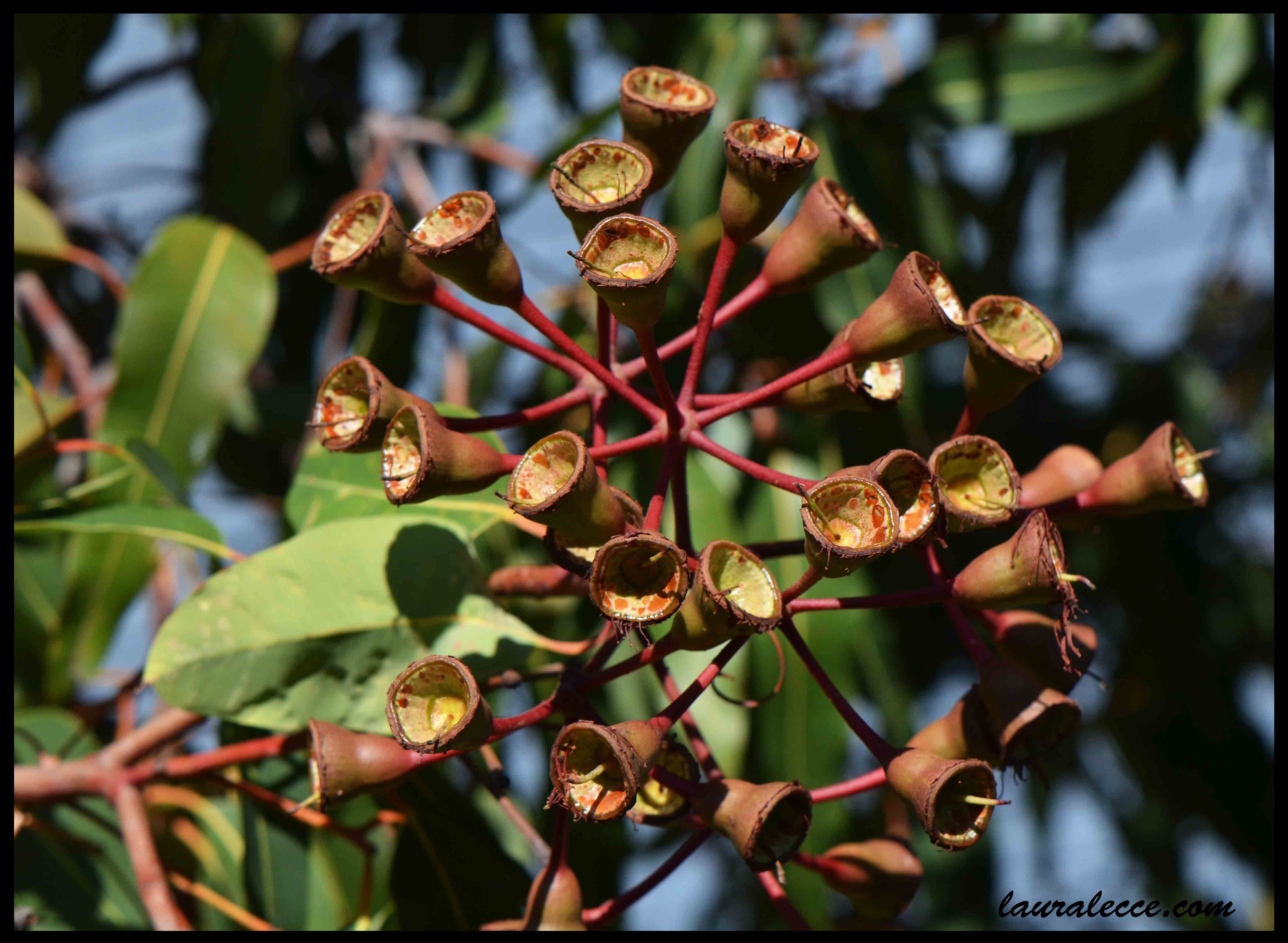 1. Todays flower is from the eucalyptus tree. There are many varieties of these beautiful trees and shrubs and most are native to Australia. They play a vital role in Australia’s natural environment and are found abundantly throughout the country, the only major environment they do not inhabit is Australia’s rainforests. Interestingly they release biochemicals which can influence the growth, reproduction and survival of other organisms, and thus inhibit other plant species growing nearby (this is called allelopathy). Planting these trees and shrubs in your yard are a great way to encourage Australian wildlife to visit your garden, as they attract and support a multitude of Australian wildlife. The most well known eucalyptus eater is the koala, but they also attract cockatoos, rainbow lorikeets and other parrots, gliders and possums. The flowers alone are beautiful to photograph, and even once they fall off, the remaining gum nuts still make for interesting subjects.