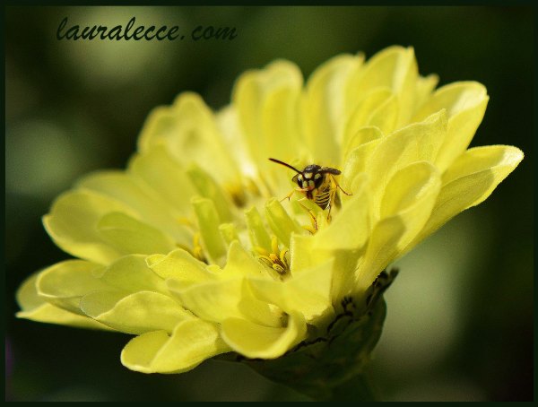 One thought on “Yellow zinnia with a yellowjacket”