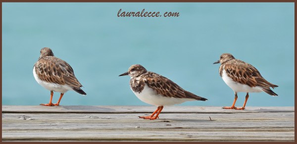 Not all seabirds are what we imagine. When I hear “seabird” I think of a large pointy-winged hunter gliding over the ocean, waiting to dive for its prey just below the surface of the water. Or, I think of a huge colony of squabbling seagulls on the sand fighting over their food. In this photo however, are a trio of fairly timid and quiet seabirds that are often overlooked for a photo. I think that the red-brown feathers and bright orange legs are a perfect match for this crystal clear, aqua blue water.